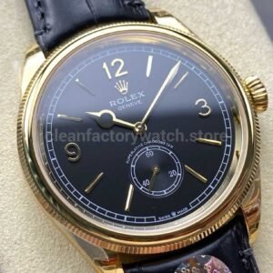 8+ Factory Rolex 1908 52508-0002 39mm Yellow Gold Leather Strap Arabic Numerals Black Dial