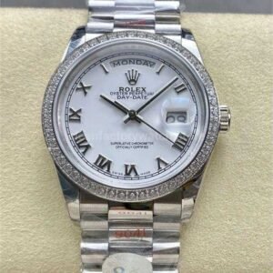 8+ Factory Counterweight Rolex Day-Date 128349RBR-0049 36mm Diamond Bezel Full 904L Baguette Diamond Mother Of Pearl Dial