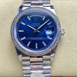 8+ Factory Counterweight Rolex Day-Date 128349RBR-0031 36mm Diamond Bezel Full 904L Roman Number Blue Dial