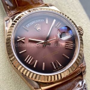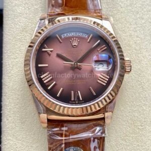 8+ Factory counterweight Rolex Day-Date 36mm 128235-0037 Rose Gold Crocodile Leather Strap Diamond Mope Baguette Diamond Brown Ombré Dial