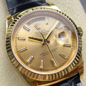8+ Factory counterweight Rolex Day-Date 36mm 128238 Yellow Gold Crocodile Leather Strap Baguette Diamond Champagne Dial