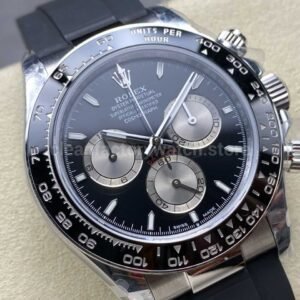 QF Factory counterweight Rolex Daytona 126519LN-0002 40mm White Gold Rubber Strap Black Dial