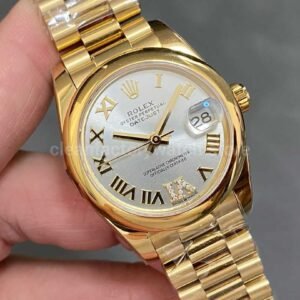 A+ Factory Rolex Datejust 278245 31mm Full Yellow Gold Roman Numerals&Diamond Silver Dial