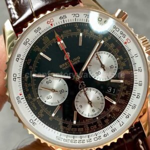 BLS Factory Breitling Navitimer B01 Chronograph RB0121211B1P1 43mm Rose Gold Leather Strap Silver Eye Black Dial