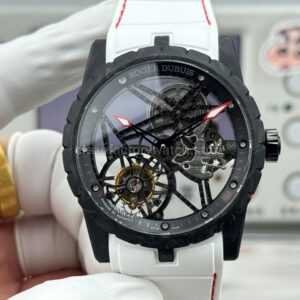 NEW Factory Roger Dubuis Excalibur DBEX0577 42mm Carbon Fiber White Rubber Strap Skeletonized Dial