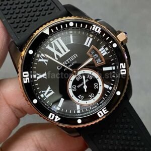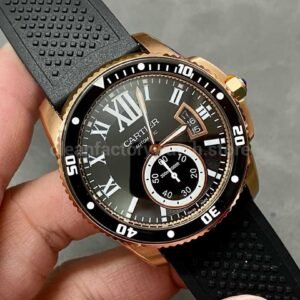 F5 Factory Cartier Calibre de Cartier Diver W7100052 42mm Rose Gold Rubber Strap Roman Numerals Black Dial