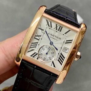 F5 Factory Cartier Tank MC W5330001 34mm Rose Gold Leather Strap Roman Numerals White Dial