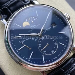 TWA Factory IWC Portofino Hand-Wound IW516405 45mm Silver Needle Steel Black Leather Strap Blue Dial