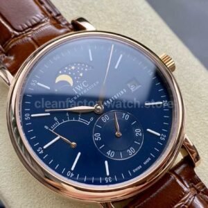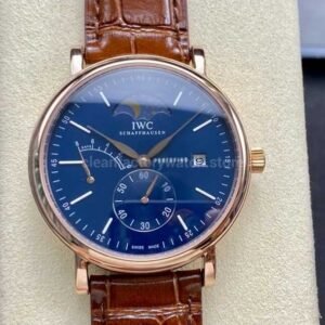 TWA Factory IWC Portofino Hand-Wound IW516407 45mm Rose Gold Needle Rose Gold Brown Leather Strap Blue Dial