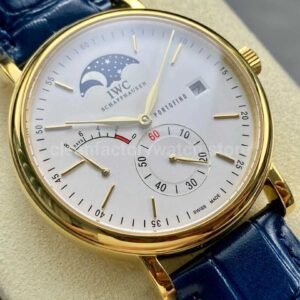 TWA Factory IWC Portofino Hand-Wound IW516409 45mm Gold Needle Gold Blue Leather Strap White Dial