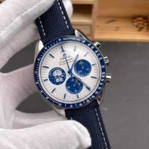 SMF Factory Omega Speedmaster Silver Snoopy Award 310.32.42.50.02.001 42mm Steel Canvas Strap White Dial