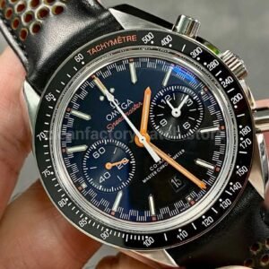 OM Factory Omega Speedmaster Racing 329.32.44.51.01.001 44mm Steel Leather Strap Black Dial