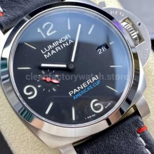 TTF Factory Panerai Luminor Marina PAM910 Steel Leather Strap Arabic Numerals Black Dial
