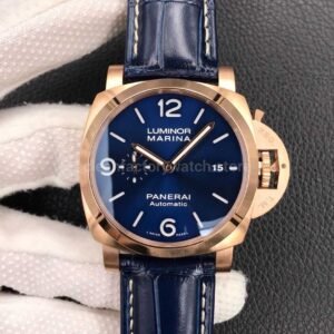 VS Factory Panerai Luminor Marina PAM 01112 44mm Rose Gold Leather Strap Blue Dial