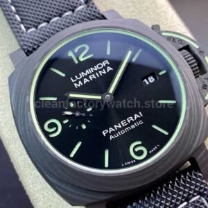 VS Factory Panerai Luminor Marina PAM 01661 44mm Carbon Fiber Canvas Strap Black Dial