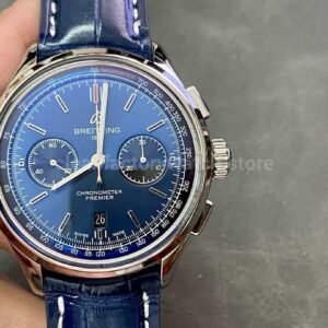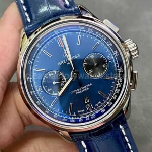 BLS Factory Breitling Premier B01 Chronograph Date AB0118A61C1P2 42mm Steel Leather Strap Black Eye Blue Dial
