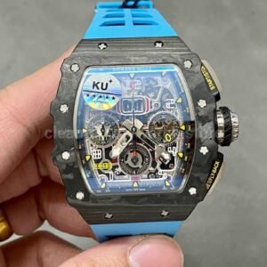 KU Factory Richard Mille RM 011-03 44.5mm Carbon Fiber Blue Rubber Strap Arabic Numerals Skeletonized Dial