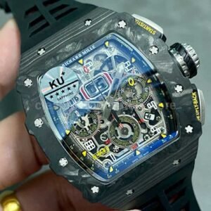 KU Factory Richard Mille RM11-03 44.5mm Carbon Fiber Black Rubber Strap Skeletonized Dial
