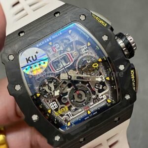 KU Factory Richard Mille RM11-03 44.5mm Carbon Fiber White Rubber Strap Skeletonized Dial