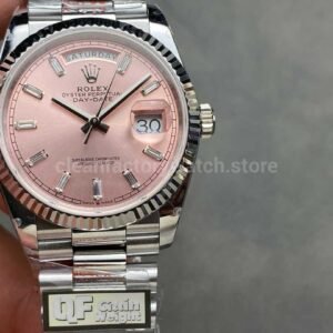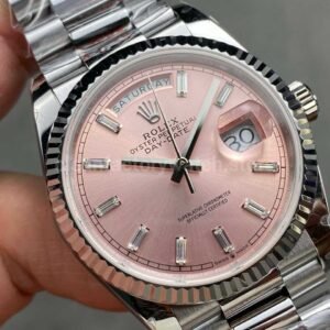 QF Factory Counterweight Rolex Day-Date 128239-0071 36mm Full 904L Baguette Diamond Pink Dial