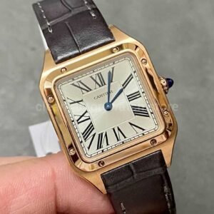 F1 Factory Cartier Santos Dumont WGSA0022 27.5mm Rose Gold Leather Strap Roman Numerals Silver Dial