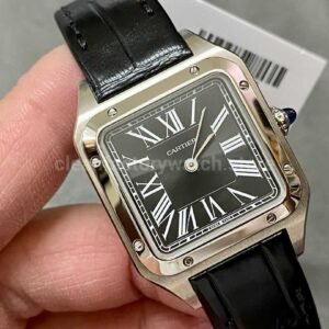 F1 Factory Cartier Santos Dumont WSSA0023 27.5mm Steel Leather Strap Roman Numerals Black Dial