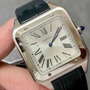 F1 Factory Cartier Santos Dumont W2SA0017 33.9mm Steel Leather Strap Roman Numerals Silver Dial