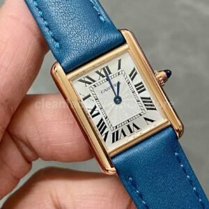 F1 Factory Cartier Tank Louis Cartier WGTA0010 22mm Rose Gold Blue Leather Strap Roman Numerals Silver Dial