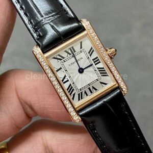 F1 Factory Cartier Tank Louis Cartier WJTA0010 22mm Diamond Bezel Rose Gold Leather Strap Roman Numerals Silver Dial