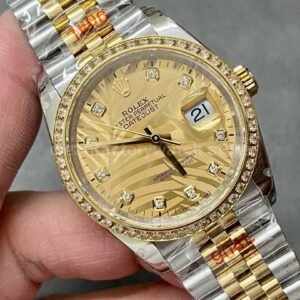 GM Factory Rolex Datejust 126283RBR-0029 36mm Diamond Yellow Gold Bezel Half Yellow Gold Diamond Mop Gold Palm Motif Dial Jubilee