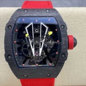 BBR Factory Richard Mille RM35-02 Black Carbon Fiber Red Rubber Strap Black Skeletonized
