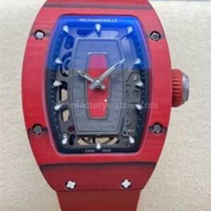 G+ Factory Richard Mille RM07-01 31.4mm Red Carbon Fiber Red Rubber Strap Skeletonized Dial