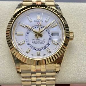 Noob Factory Rolex Sky-Dweller 336938-0006 42mm Full Yellow Gold White Dial Jubilee
