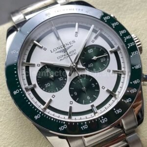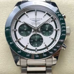 AF Factory Longines Conquest Chronograph L3.835.4.02.6 42mm Full Steel Strap Green Eyes White Dial