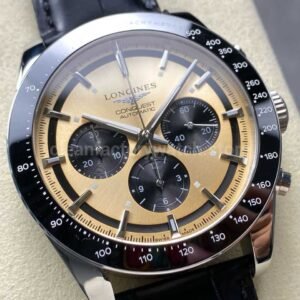 AF Factory Longines Conquest Chronograph L3.835.4.02.6 42mm Steel Leather Strap Black Eyes Champagne Dial
