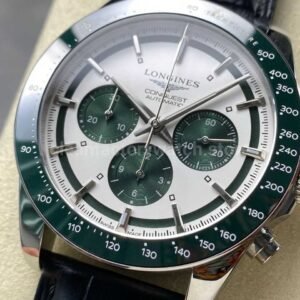 AF Factory Longines Conquest Chronograph L3.835.4.02.6 42mm Steel Leather Strap Green Eyes White Dial