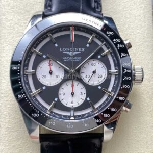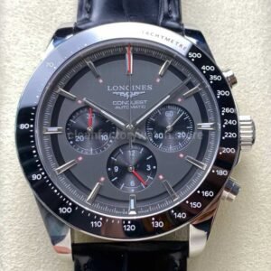 AF Factory Longines Conquest Chronograph L3.836.4.52.9 42mm Steel Leather Strap Black Eyes Gray Dial