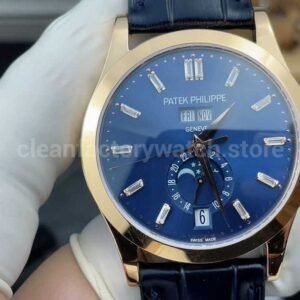 PPF Factory Patek Philippe Annual Calendar 5396R-015 Rose Gold Baguette Diamond Blue Dial