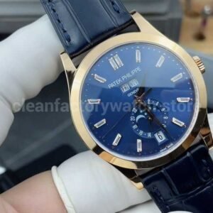 PPF Factory Patek Philippe Annual Calendar 5396R-014 Rose Gold Leather Strap Blue Dial