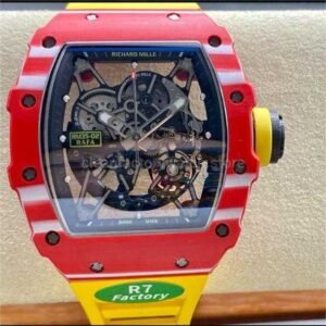 R7 Factory Richard Mille RM35-02 44.5mm Red Carbon Fiber Yellow Rubber Strap Skeletonized Dial
