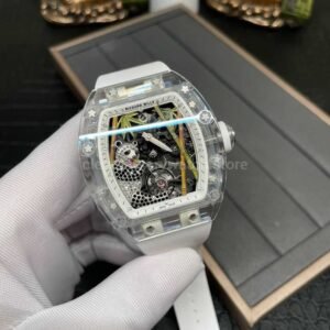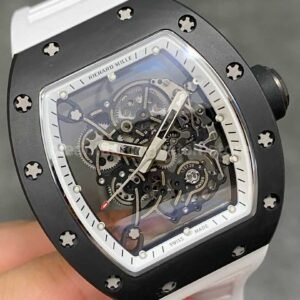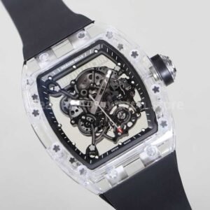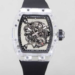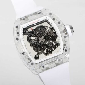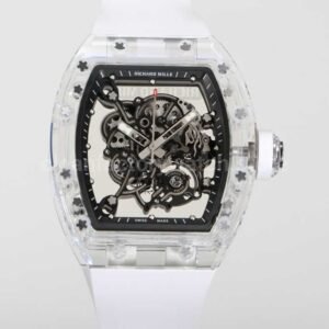 RM Factory Richard Mille RM 055 43mm Transparent Crystal White Rubber Strap Skeletonized Black Dial