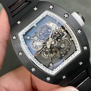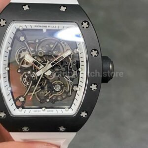 RM Factory Richard Mille RM 055 43mm Black Ceramic Black Rubber Strap Skeletonized White Dial