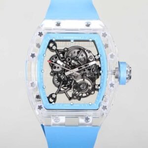RM Factory Richard Mille RM 055 43mm Transparent Crystal Sky Blue Rubber Strap Skeletonized Sky Blue Dial