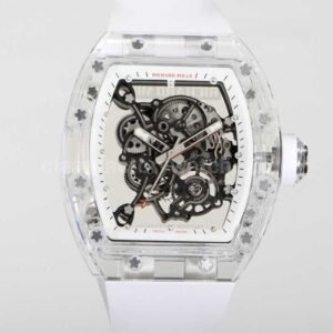 RM Factory Richard Mille RM 055 43mm Transparent Crystal White Rubber Strap Skeletonized White Dial