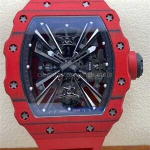 RM Factory Richard Mille RM12-01 Carbon Fiber Red Rubber Strap Skeletonized Black Dial