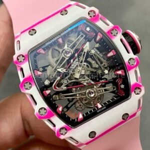 RM Factory Richard Mille RM 38-02 43mm Carbon Fiber Pink Rubber Strap Skeletonized Dial