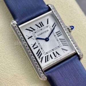 F1 Factory Cartier Tank Louis Cartier W4TA0017 25.5mm Diamond Bezel Steel Leather Strap Roman Numerals Silver Dial