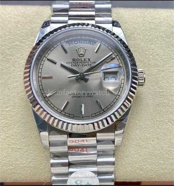 8+ Factory Counterweight Rolex Day-Date 128236-0001 36mm Full Platinum Silver Dial