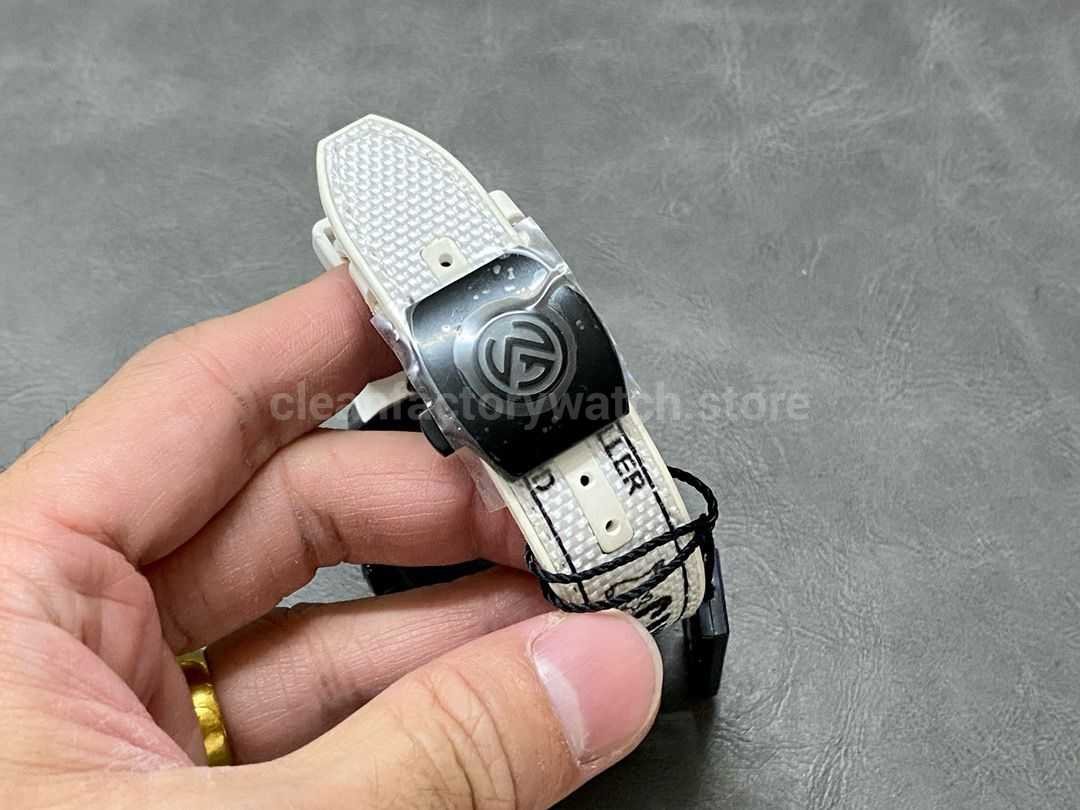 The watch is equipped with an enhanced steel-head rubber strap, which is softer and more comfortable than standard alternatives. Impressively, this strap is fully compatible with the original Franck Muller V45 model, underscoring its exceptional quality and craftsmanship.