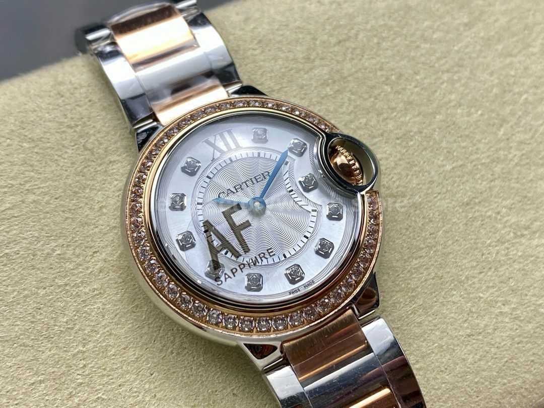 AF Factory Cartier Ballon Bleu W3BB0025 28mm Diamond Bezel Rose GoldSteel Roman Numerals&Diamond Silver Dial